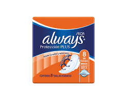 TOALLITAS HIGIÉNICAS ALWAYS CON ALAS PROTECCION SECA X 8UNID